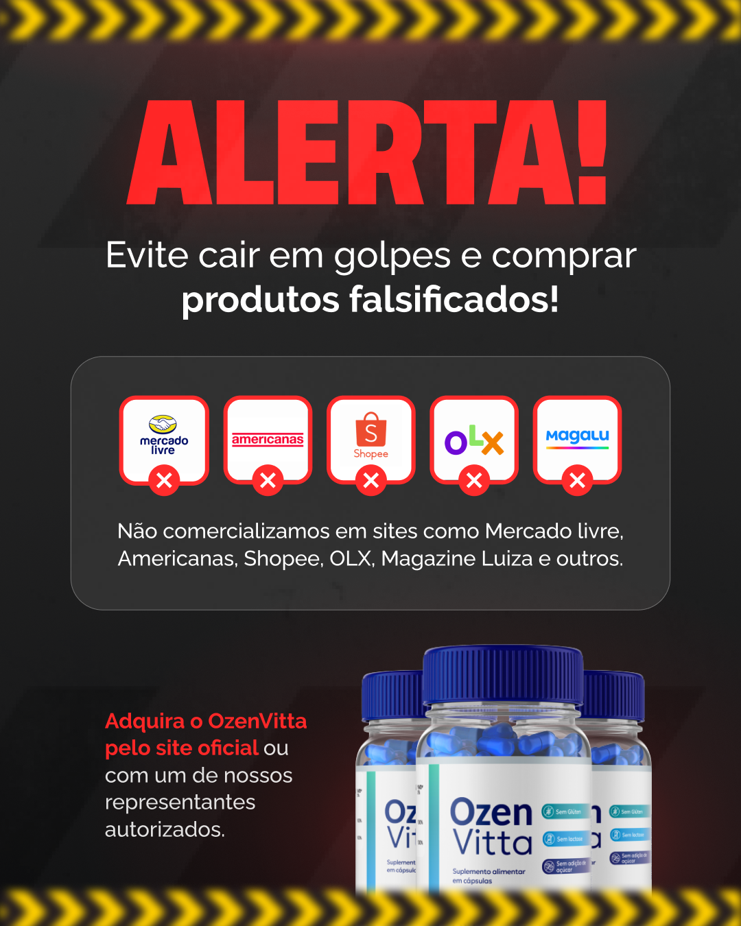 Um ponto importante destacado na própria página: o OzenVitta não é vendido no Mercado Livre. A venda ocorre exclusivamente pelo site oficial. Produtos encontrados em outros canais não têm respaldo do fabricante, o que representa risco à qualidade e à garantia.
