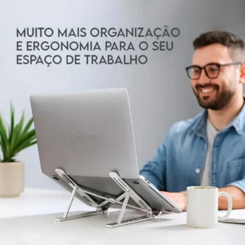 Suporte dobrável e articulado em alumínio para notebooks, tablets e laptops.