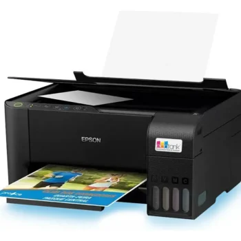 Impressora multifuncional a cores com tecnologia Ecotank de alta capacidade de tinta, ideal para uso doméstico e pequenos escritórios.